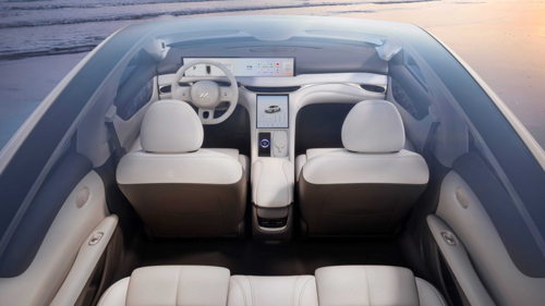 L’impressionnant écran d’infodivertissement ultra HD de 26,3 pouces constitue sans aucun doute l’élément central de l’habitacle. Il est complété par un écran tactile de 10,5 pouces. Un époustouflant toit vitré panoramique et un système audio sur mesure avec 20 haut-parleurs, dont quatre Sky Speakers encastrés dans le plafond, viennent encore compléter l’offre.